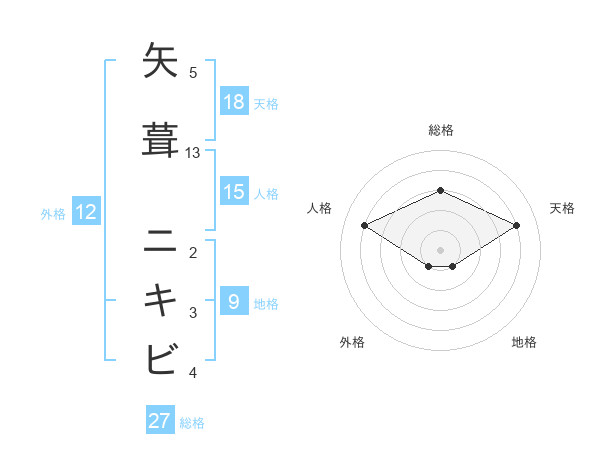 矢葺 ニキビさんの総格は27画の3点!