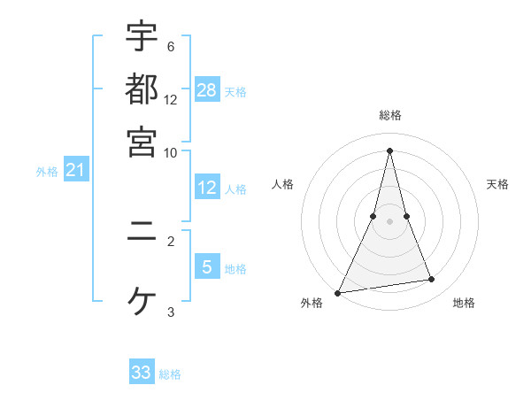 宇都宮 ニケさんを姓名の画数から五運を鑑定