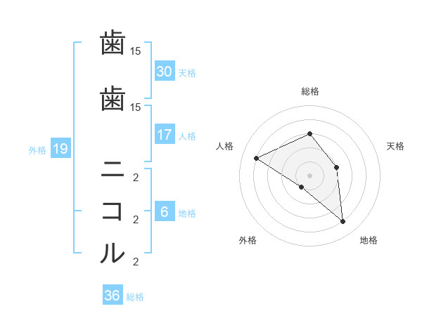 歯歯 ニコルさんを姓名の画数から五運を鑑定