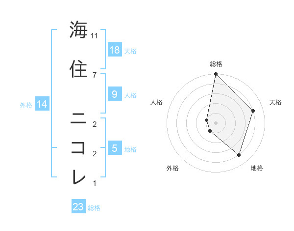 海住 ニコレさんの天格は18画の4点!