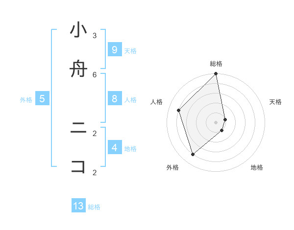 小舟 ニコさんを姓名の画数から五運を鑑定