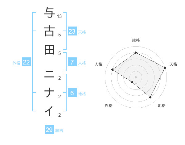 与古田 ニナイさんを姓名の画数から五運を鑑定