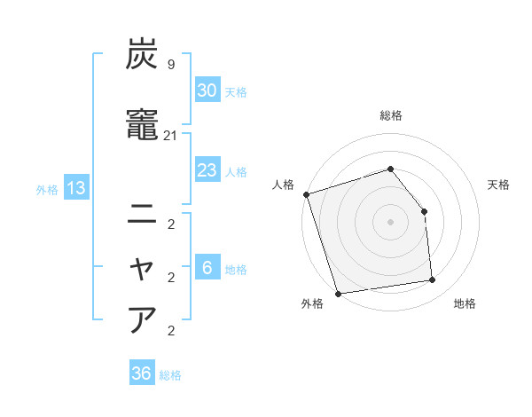 炭竈 ニャアさんを姓名の画数から五運を鑑定
