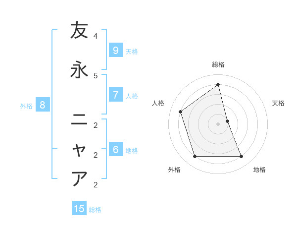 友永 ニャアさんの総格は15画の4点!