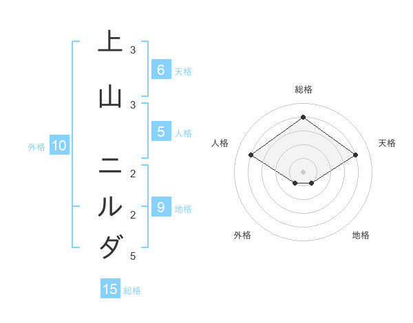 上山 ニルダさんを姓名の画数から五運を鑑定