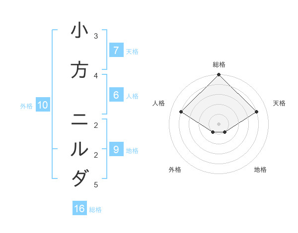 小方 ニルダさんの総格は16画の5点
