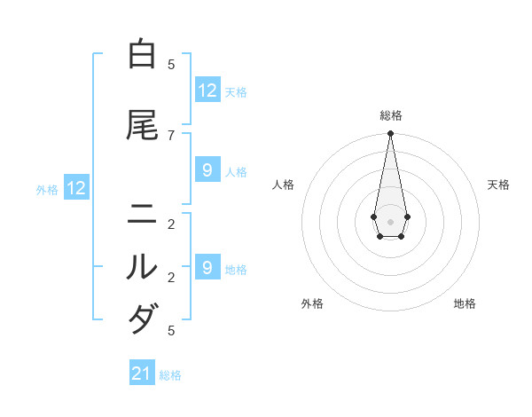 白尾 ニルダさんを姓名の画数から五運を鑑定