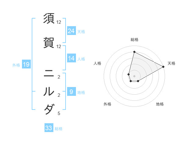 須賀 ニルダさんを姓名の画数から五運を鑑定