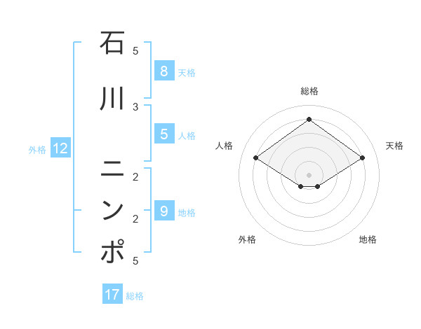 石川 ニンポさんを姓名の画数から五運を鑑定