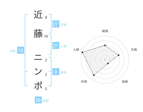 近藤 ニンポさんを姓名の画数から五運を鑑定
