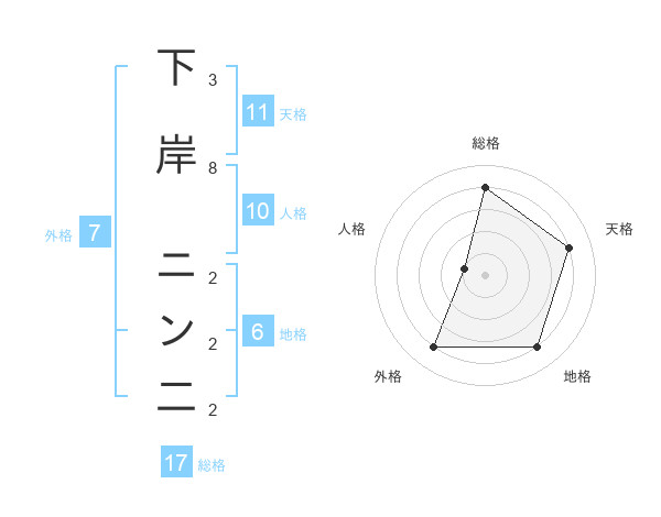 下岸 ニン二さんの総格は17画の4点