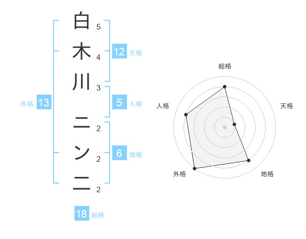 白木川 ニン二さんを姓名の画数から五運を鑑定