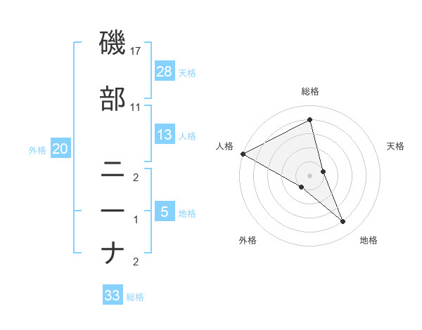 磯部 ニーナさんを姓名の画数から五運を鑑定