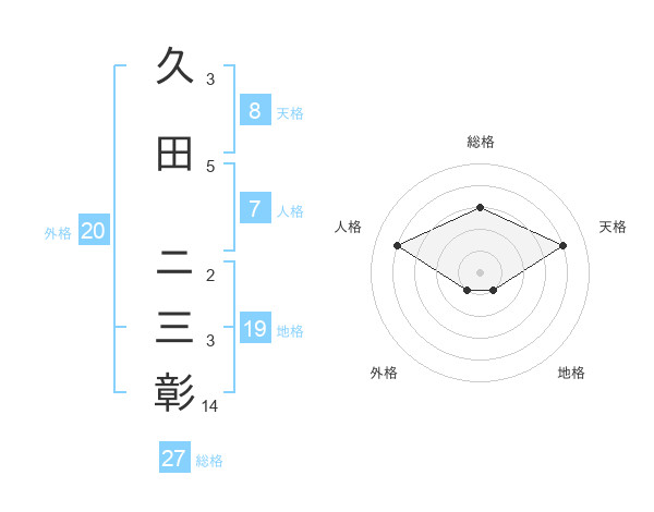 久田 ニ三彰さんの外格は20画の1点!