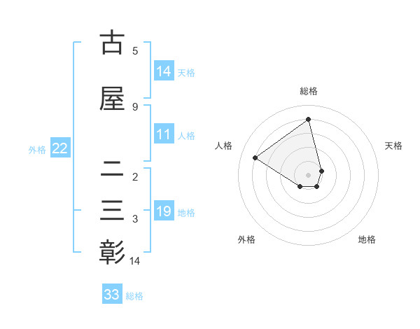 古屋 ニ三彰さんを姓名の画数から五運を鑑定