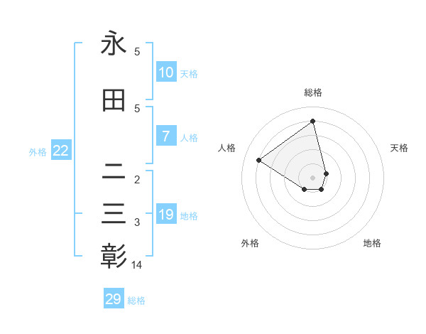 永田 ニ三彰さんを姓名の画数から五運を鑑定