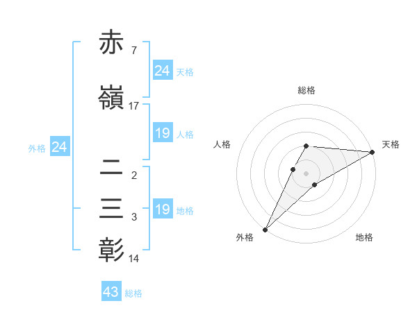 赤嶺 ニ三彰さんの外格は24画の5点!
