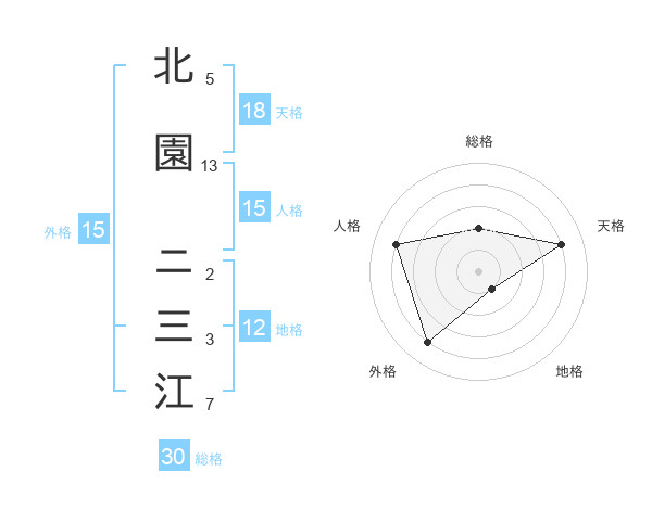 北園 ニ三江さんを姓名の画数から五運を鑑定