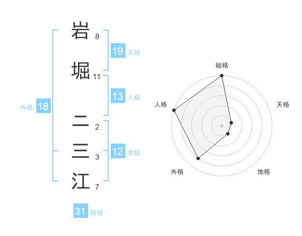 岩堀 ニ三江さんを姓名の画数から五運を鑑定