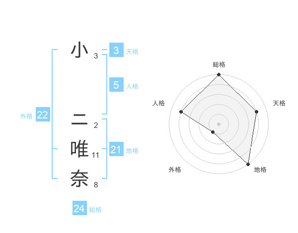 小 ニ唯奈さんを姓名の画数から五運を鑑定
