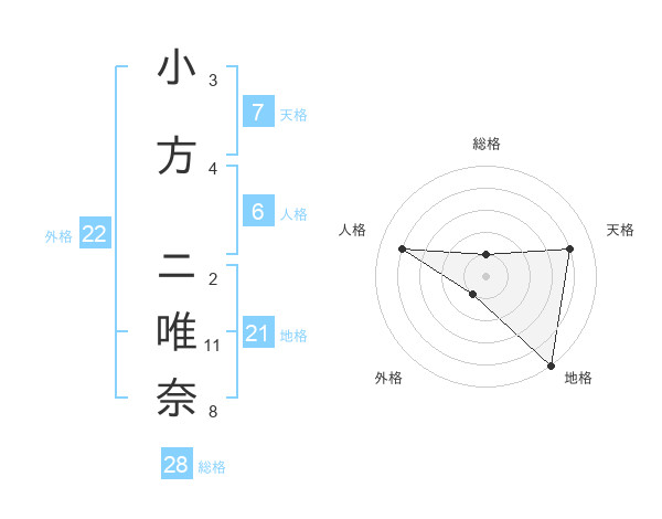 小方 ニ唯奈さんを姓名の画数から五運を鑑定