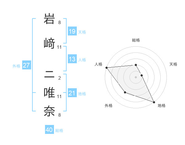 岩﨑 ニ唯奈さんの総格は40画の2点!