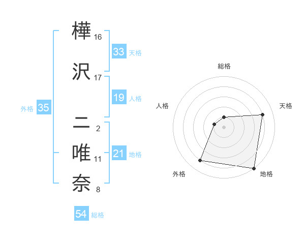 樺沢 ニ唯奈さんの外格は35画の4点!