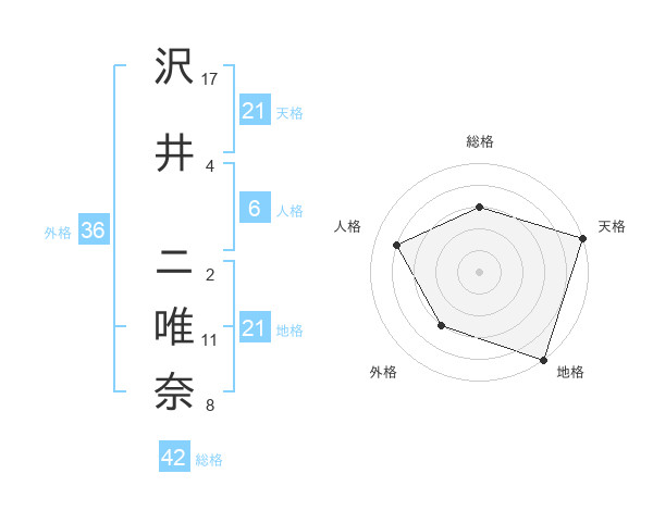 沢井 ニ唯奈さんを姓名の画数から五運を鑑定