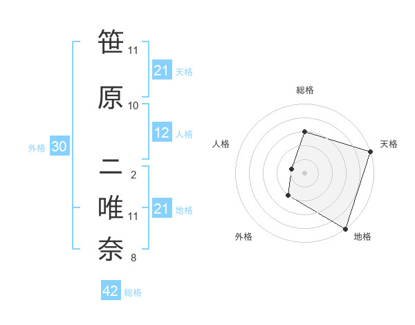 笹原 ニ唯奈さんを姓名の画数から五運を鑑定