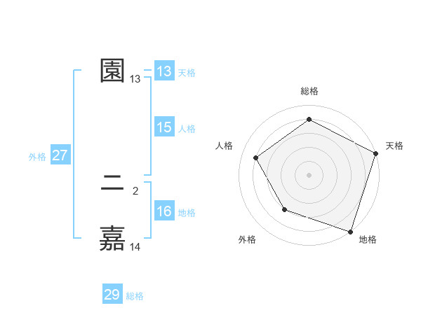 園 ニ嘉さんの総格は29画の4点!