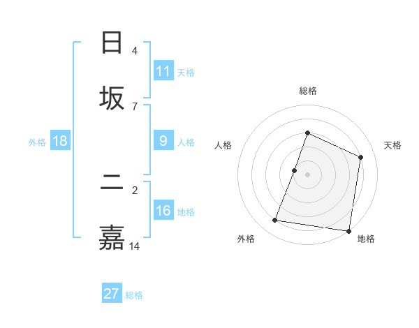 日坂 ニ嘉さんを姓名の画数から五運を鑑定