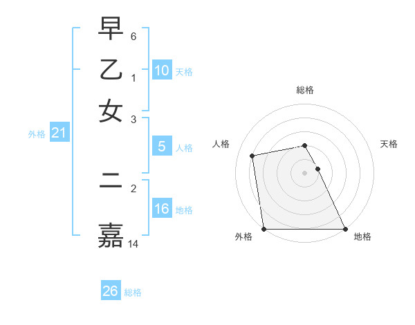 早乙女 ニ嘉さんの総格は26画の2点!