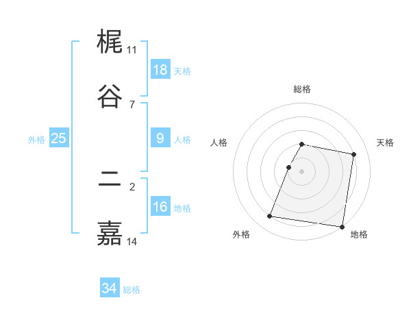 梶谷 ニ嘉さんを姓名の画数から五運を鑑定