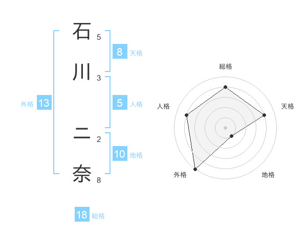 石川 ニ奈さんの外格は13画の5点