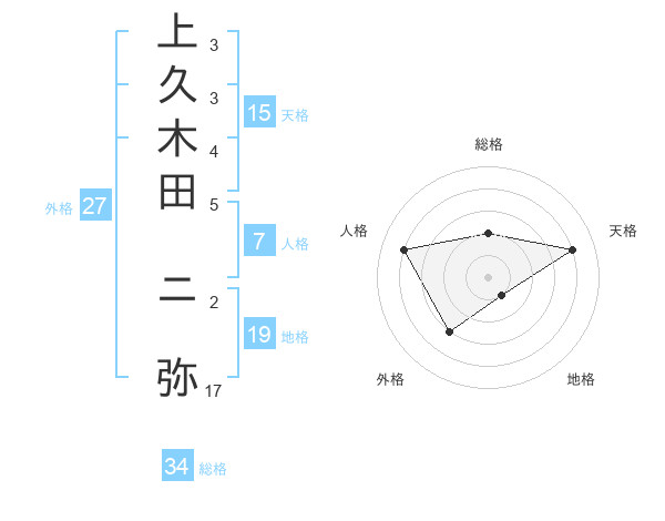 上久木田 ニ弥さんを姓名の画数から五運を鑑定