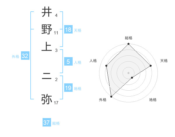 井野上 ニ弥さんを姓名の画数から五運を鑑定