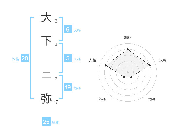 大下 ニ弥さんを姓名の画数から五運を鑑定