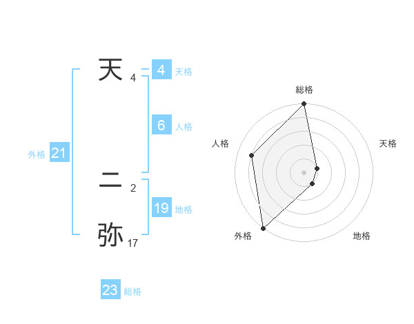 天 ニ弥さんを姓名の画数から五運を鑑定