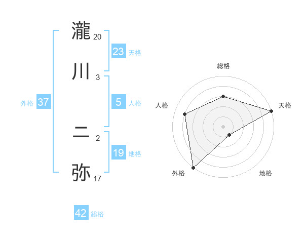 瀧川 ニ弥さんの天格は23画の5点!