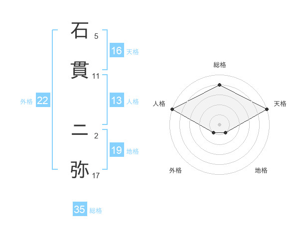 石貫 ニ弥さんを姓名の画数から五運を鑑定