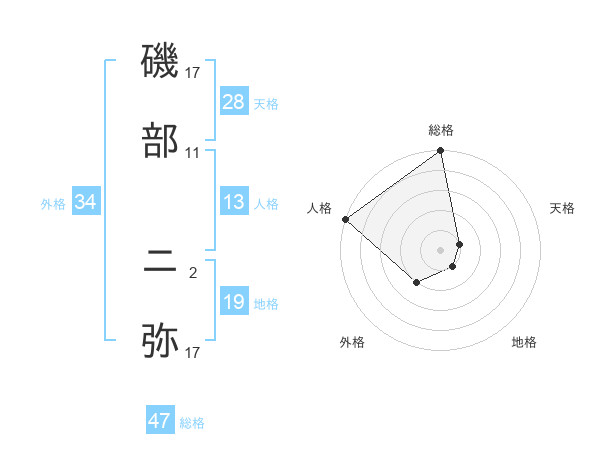 磯部 ニ弥さんを姓名の画数から五運を鑑定