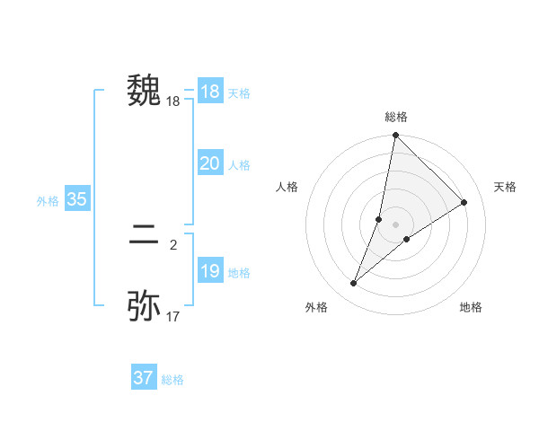魏 ニ弥さんの外格は35画の4点!
