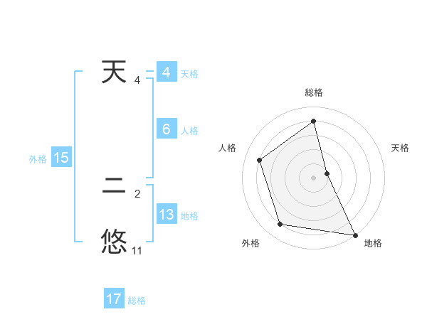 天 ニ悠さんの総格は17画の4点!