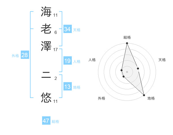 海老澤 ニ悠さんの総格は47画の5点!