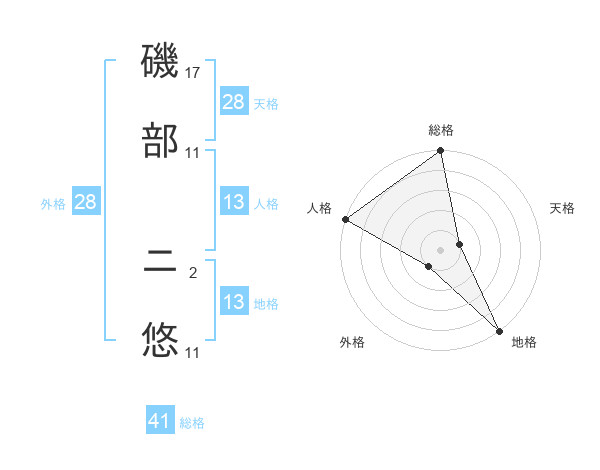 磯部 ニ悠さんを姓名の画数から五運を鑑定