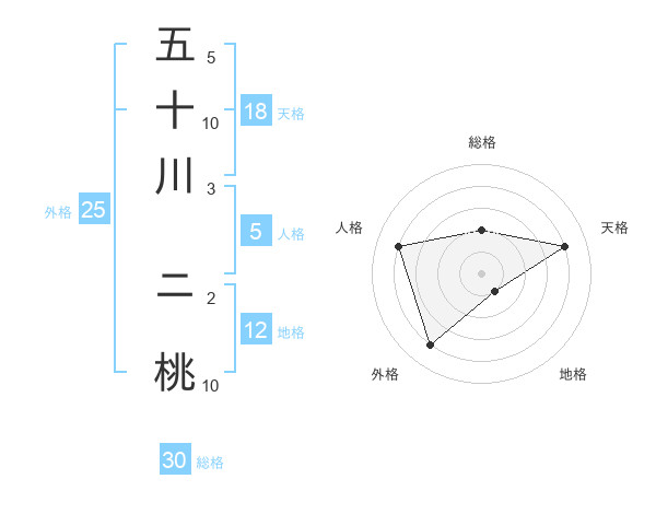 五十川 ニ桃さんを姓名の画数から五運を鑑定
