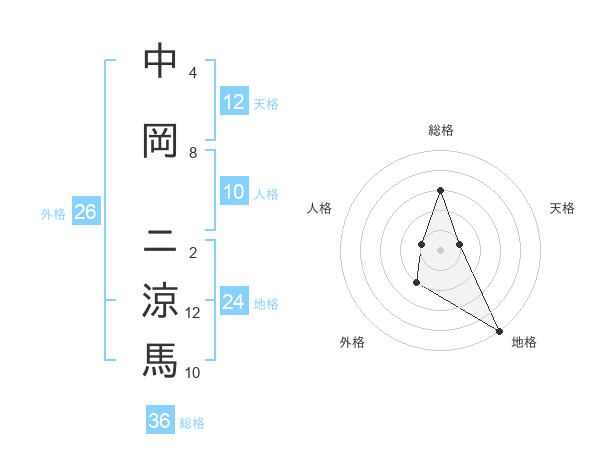 中岡 ニ涼馬さんを姓名の画数から五運を鑑定