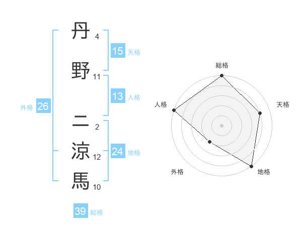 丹野 ニ涼馬さんを姓名の画数から五運を鑑定