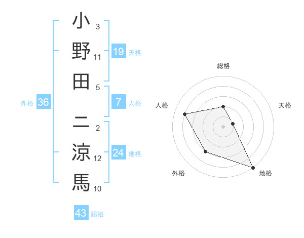 小野田 ニ涼馬さんを姓名の画数から五運を鑑定