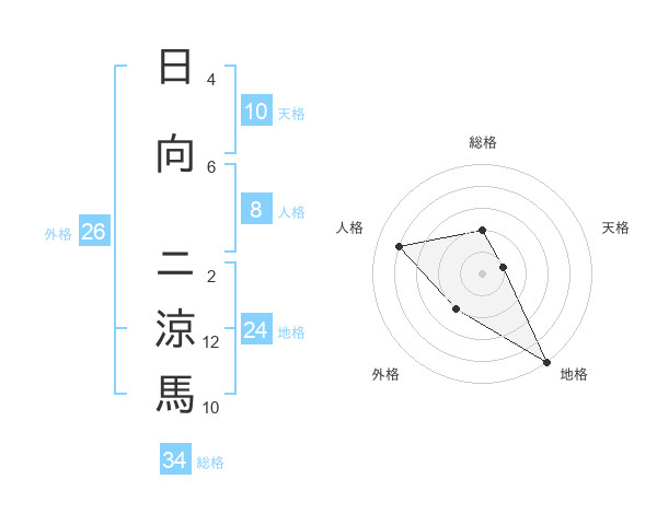 日向 ニ涼馬さんを姓名の画数から五運を鑑定